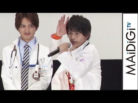 特撮ドラマ「仮面ライダー」シリーズの劇場版最新作「仮面ライダー平成ジェネレーションズ Dr.パックマン対エグゼイド&ゴーストwithレジェンドライダー」(坂本浩一監督)の舞台あいさつが12月20日、東京都内で行われ、「仮面ライダーエグゼイド」の主人公役の飯島寛騎さんや「仮面ライダーゴースト」の主人公役の西銘駿さん、ゲスト出演のプロレスラーの棚橋弘至選手らが登場した。舞台あいさつでは、飯島さん、西銘さん、棚橋選手が変身ポーズを生披露。それぞれが「ノーコンティニューでクリアしてやるぜ!」「命、燃やすぜ!」「さあ、お前の罪を数えろ」など決めぜりふ付きでポーズを披露すると、会場からは拍手と大歓声が起こった。