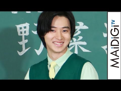 俳優の山崎賢人さんが8月9日、東京・千代田女学園中学校・高等学校(東京都千代田区)で“野菜授業”を行った。カゴメの野菜ジュース「野菜生活100」のCMキャラクター「野菜先生」に扮(ふん)した山崎さんは、33人の女子中高生に拍手と声援で迎えられ緊張の面もちで教壇に立った。