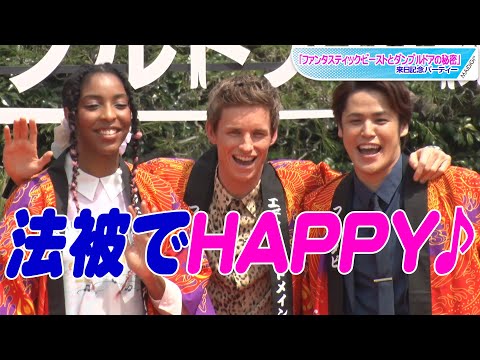 【動画】宮野真守、「ハッピーになれる」法被プレゼント エディ・レッドメイン&ジェシカ・ウィリアムズが大興奮! ファンタビ来日記念パーティー