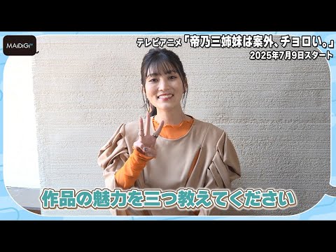 「週刊少年サンデー」(小学館)で連載中のひらかわあやさんの人気マンガが原作のテレビアニメ「帝乃三姉妹は案外、チョロい。」が、7月9日からTOKYO MXほかで順次放送される。芸、武、文それぞれの天才である帝乃三姉妹と、全てが平均以下の凡人・綾世優との同居生活を描いたホームラブコメディー。“武の天才”帝乃二琥役の古賀葵さんに同作の魅力を聞いた。