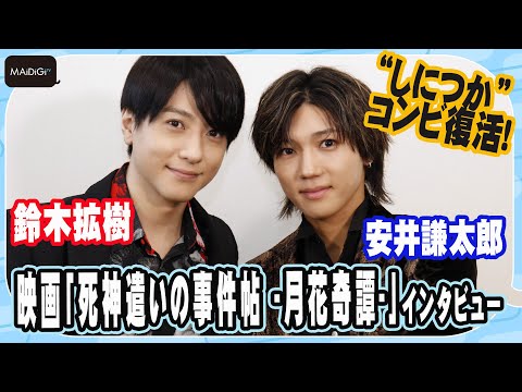 舞台「刀剣乱舞」などでも活躍する俳優の鈴木拡樹さん、「7ORDER」の安井謙太郎さんが出演する映画「死神遣いの事件帖 -月花奇譚(げっかきたん)-」(柴崎貴行監督)が11月18日、初日を迎えた。主人公の死神遣い・久坂幻士郎を演じる鈴木さんと、死神・十蘭を演じる安井さんに、作品の魅力、コンビならではのエピソードを聞いた。
