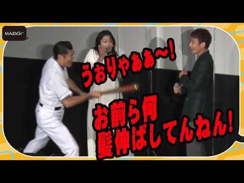 俳優の醍醐虎汰朗さんの主演映画「野球部に花束を」(飯塚健監督)の公開記念舞台あいさつが8月13日、東京都内で行われ、醍醐さんのほか、黒羽麻璃央さん、駒木根隆介さん、市川知宏さん、 三浦健人さん、浅野杏奈さん、飯塚監督が登壇。サプライズゲストとして高島政宏さんも登場した。
