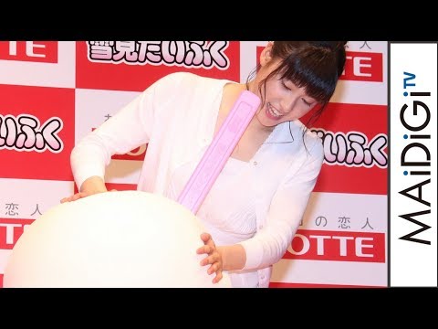 【動画】土屋太鳳、巨大「雪見だいふく」でスタンプ 「雪見だいふく」新CM発表会1