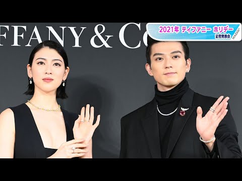 俳優の新田真剣佑さんと女優の三吉彩花さんが11月11日、ティファニー 銀座本店で行われた「2021年 ティファニー ホリデー記者発表会」に登場した。