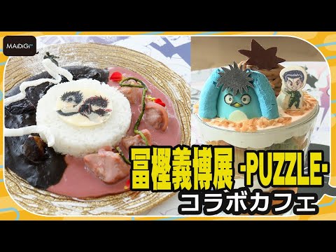 【動画】<冨樫義博展 -PUZZLE->コラボカフェに飛影と蔵馬の黒×ピンクカレー! 可愛すぎる「プ」パフェも