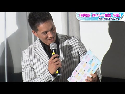 ドラマは給食マニアの教師・甘利田幸男(市原さん)と、給食マニアの生徒・神野ゴウ(佐藤大志さん)が給食バトルを描いた作品で、今回の劇場版第2弾は、宿敵ゴウの卒業によって長く続いた給食バトルの終止符が打たれる。