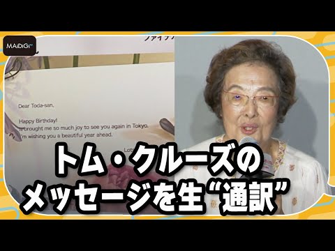 映画字幕翻訳の第一人者で通訳の戸田奈津子さんが7月3日、東京都内で行われた「『ミッション:インポッシブル/ファイナル・レコニング』トム・クルーズ バースデーイベント」に登場し、米俳優のトム・クルーズさんからの誕生日プレゼントエピソードを披露した。