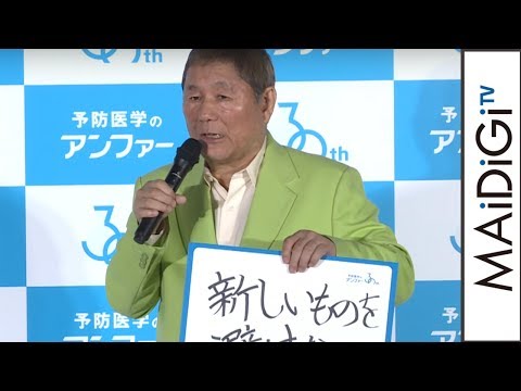 タレントのビートたけしさんが6月13日、東京都内で開かれた「アンファー30周年 企業発表会」に登場。この日の発表会では、たけしさんが出演する2種類のCMが公開された。「歩く」編は、たけしさんがまっすぐ見つめて「一回きりの人生。しっかりやれよ」と若者に向かって力強く語りかける。「転ぶ」編は、たけしさんが「若いころなんて失敗の連続」「生意気だったでしょ」などとコミカルに語る。14日から放送される。