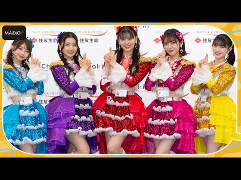アイドルグループ「超ときめき宣伝部」が3月17日、東京都内で行われた「住友生命保険新ウェブCM記者発表会」に登場した。