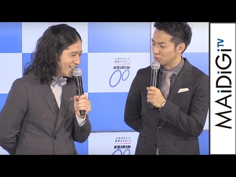 お笑いコンビ「ピース」の又吉直樹さんと綾部祐二さんが、元AKB48の川栄李奈さんとともに、JKAと全国競輪施行者協議会の今年度の新CMキャラクターに起用され、3月29日、東京都内で行われた「2016年度 KEIRIN新CM発表会」に登場した。