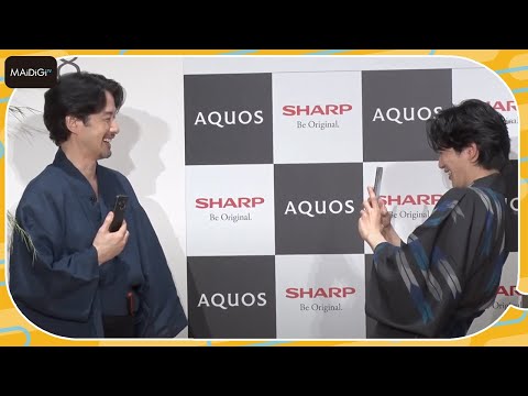俳優の竹野内豊さんと志尊淳さんが7月3日、東京都内で行われたSHARPのスマートフォン「AQUOS」の新CM完成披露イベントに、浴衣姿で登場した。