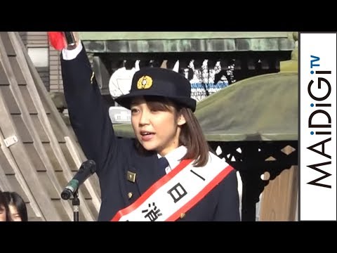 女優の山谷花純さんが1月24日、帝釈天題経寺(東京都葛飾区)で行われた「文化財防火デー消防演習」で一日消防署長を務めた。