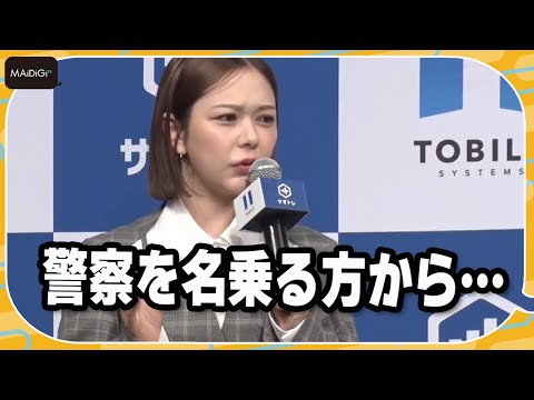アイドルグループ「HKT48」元メンバーでタレントの村重杏奈さんとお笑いトリオ「安田大サーカス」のクロちゃんが10月29日、東京都内で行われた法人向け詐欺メール・SMS訓練サービス「サギトレ」発売発表会に登場した。