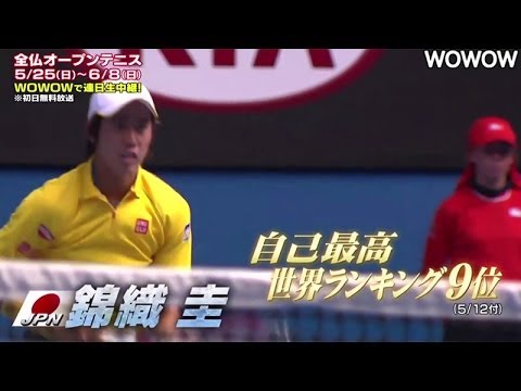 2014年シーズンのテニス世界4大大会(グランドスラム)第2戦となる「全仏オープンテニス」が5月25日に開幕する。WOWOWでは世界ランキングトップ10入りを果たした"日本のエース"錦織圭の試合など、現地の感動と興奮を連日生中継で伝える。