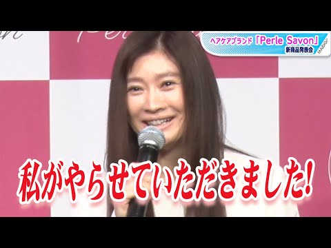 女優の篠原涼子さんが5月24日、東京都内で行われた自身のプロデュースヘアケアブランド「Perle Savon」の新商品発表会に登場した。