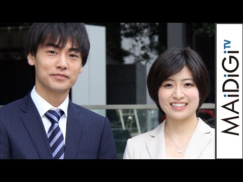 女優の南沢奈央さんと俳優の福士誠治さんが4月19日、東京サンケイビル(東京都千代田区)の前で、WOWOWの連続ドラマ「連続ドラマW 社長室の冬-巨大新聞社を獲る男-」のチラシ配布イベントに登場した。スーツ姿の南沢さんと福士さんは、会社員らにチラシを配布し、ドラマをアピールした。