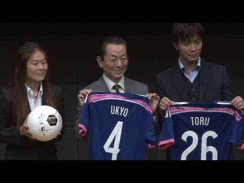 「AFC女子アジアカップ」は、来年に開催されるワールドカップへの出場権を懸けた大会で、澤選手は「これまでアジアカップの優勝はないので、絶対に優勝してワールドカップへの出場権を獲得したい」と意気込みを語った。そんな澤さんから水谷さんと成宮さんに、世界一の証しである星のマークとエンブレムの入ったなでしこJAPANのユニホームがプレゼントされると2人は大喜び。成宮さんは「シーズン中にもかかわらず駆けつけていただいてありがとうございました」とお礼の言葉を述べ「国民の一人として、全力で応援させていただきます」と誓っていた。