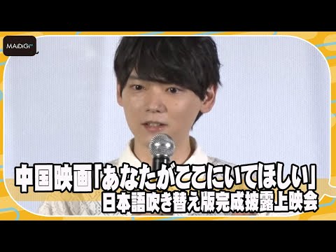 中国映画「あなたがここにいてほしい」(7月22日公開)の日本語吹き替え版の完成披露上映会が7月17日、東京都内で行われ、声優を務めた古川雄輝さん、小林千晃さん、大須賀純さんが登場した。