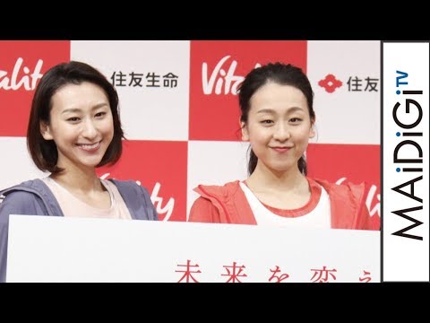 この日は、健康増進型保険「Vitality」の発売から1年を記念したイベントで、浅田さん姉妹は同保険のアンバサダーとして出席した。イベントにはお笑いコンビ「ガンバレルーヤ」のよしこさんとまひるさんも、浅田さん姉妹と同じ衣装で登場。真央さんが夢中になっているというボクササイズで、よしこさんと真央さんが対決した。