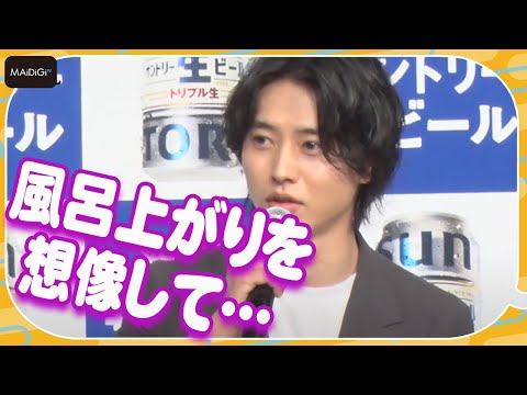 俳優の山崎賢人さんと女優の上白石萌音さん、お笑いコンビ「オズワルド」が3月28日、東京都内で行われたサントリーの新商品&新CM発表会に登場した。