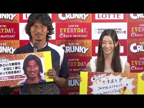 サッカーの中澤佑二選手が6月26日、東京都内で行われたロッテの「サクサクすすめ、部活生! クランキー部活応援宣言!」記者発表会に女優の足立梨花さんと出席した。ちゃんと話すのは初めてという2人。足立さんから「サッカーしているときは怖いイメージあったんですけど、実際は優しい方で、ほっとしました。会話できるか不安だったので」と印象を語られた中澤選手は「うれしいです」と大照れ。足立さんがJリーグの「名誉女子マネージャー」を務めていることから、「こんなすてきなマネジャーいたら、サッカーやってないですよ。チャラい感じでやってます」とぶっちゃけていた。
