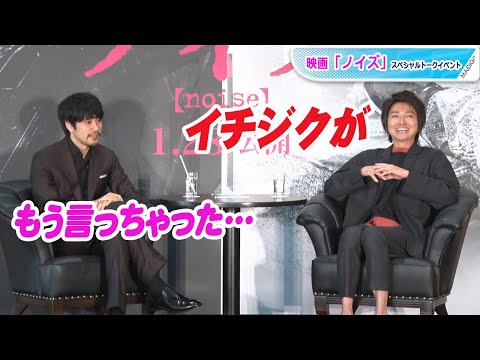 俳優の藤原竜也さんと松山ケンイチさんが11月28日、東京都内で行われたダブル主演映画「ノイズ」(廣木隆一監督、2022年1月28日公開)のスペシャルトークイベントに登場した。