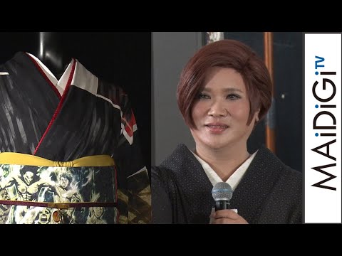 同展は、織田信長、篤姫ら偉人が着用したものやロックバンド「X JAPAN」のYOSHIKIさんら現代デザイナーが手がけた着物など約300点が展示されている。