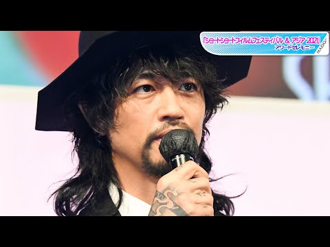 俳優の斎藤工さんが6月21日、明治神宮会館(東京都渋谷区)で開催された、アジア最大級の国際短編映画祭「ショートショートフィルムフェスティバル & アジア(SSFF&ASIA)2021」のアワードセレモニーに、齊藤工監督として出席した。ヒゲを生やしたロン毛姿でハットをかぶり、つなぎのような衣装とシャツを合わせ、クジャクの羽根のようなアクセサリーを着けたワイルドコーデだった。
