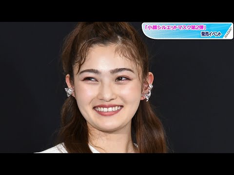 この日、発表になったのは昨年末に発売され人気となった同ブランドの「小顔シルエット」の第2弾。今回は中顔面を短く見せる新デザインを採用しており、美しい小顔印象に近づける。一足早く試した井上さんは「正面から見てもフェイスラインがすっきり。顔にメイクするみたいにマスクする感じ」とコメントした。