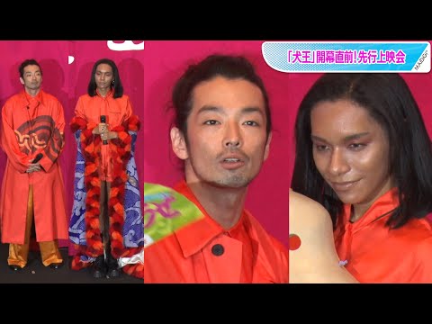 アニメ「夜明け告げるルーのうた」「映像研には手を出すな!」などの湯浅政明監督が手がける劇場版アニメ「犬王」の開幕直前!先行上映会が5月6日、東京都内で行われ、犬王の声優を務めたロックバンド「女王蜂」のボーカル・アヴちゃんと、友魚の声優を務めた俳優の森山未來さんが登場。2人とも偶然オレンジの衣装になったことを明かした。