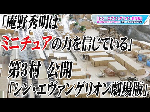人気アニメ「エヴァンゲリオン」シリーズの劇場版新作「シン・エヴァンゲリオン劇場版」(庵野秀明総監督)に登場する第3村の45分の1のスケールのミニチュア「第3村ミニチュアセット」が、4月10日~9月8日にSMALL WORLDS TOKYO展示場(東京都江東区)で展示される。展示に先駆け、内覧会が行われ、ミニチュアが公開された。ミニチュアは、第3村のシーンを描くため場面設定・画面構成検証用として制作され、幅約9メートル、奥行き約4メートル。アヤナミレイ(仮称)が使った銭湯や、“ケンケン”こと相田ケンスケの家などがお披露目された。