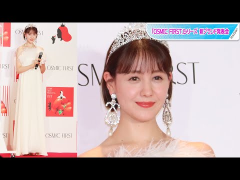 この日発表されたフルーツミニトマト「OSMIC FIRST」(OSMIC)シリーズの新ブランド「QUEEN」をイメージした装いだという。「リップにトマトの色を塗ってみました」と話した。