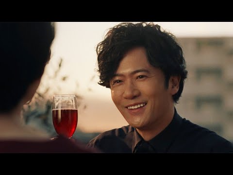 夕暮れの美しい風景の中、ソムリエのよう姿の夫(稲垣さん)が、ボトルワインを注ぐような動きで「ノンアルでワインの休日」の缶を妻のグラスに注ぐ……という内容。芸能界きってのワイン愛好家として知られる稲垣さんが、ノンアルコールなのにワインの気分に酔いしれる表情に注目だ。楽曲は、名曲「さくらんぼの実る頃(LE TEMPS DES CERISES)」を本CMのためにオリジナルでアレンジしたもので、夏木マリさんが歌唱している。