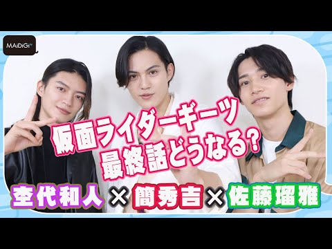 仮面ライダーたちがそれぞれの願いをかけて戦う「仮面ライダーギーツ」(テレビ朝日系、日曜午前9時)。8月27日放送の最終話(第49話)を前に、仮面ライダーギーツ/浮世英寿役の簡秀吉さん、仮面ライダータイクーン/桜井景和役の佐藤瑠雅さん、仮面ライダーバッファ/吾妻道長役の杢代和人さんにインタビュー。終盤の展開を振り返ってもらったほか、最終回の見どころを聞いた。