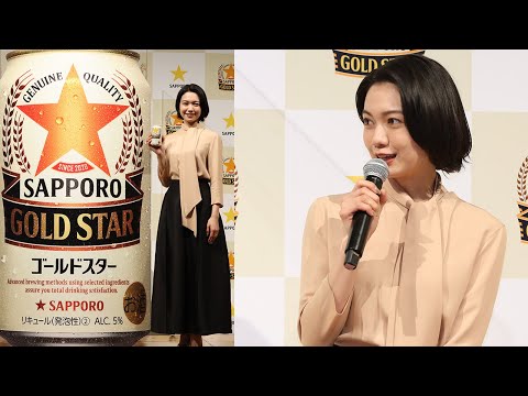女優の二階堂ふみさんが1月11日、東京都内で行われた、サッポロビールの新ジャンル「サッポロ GOLD STAR」の新CM発表会に出席した。ヌードカラーのボウタイブラウスに、黒いロング丈のフレアスカート、ヌードカラーのパンプスを合わせた洗練された大人の装い。ボウタイは長く垂らしたデザインで、着こなしのアクセントにしていた。