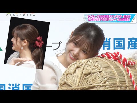 7月にアイドルグループ「乃木坂46」を卒業した松村沙友理さんが9月22日、東京都内で行われた、「JAグループお米消費拡大アンバサダー」任命式&しあわせおすそ分け!キャンペーン記者発表会に出席。卒業祝いとして、JAグループから一生分の米3.6トン(米俵60俵)を贈呈された。