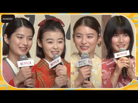 女優の森七菜さんと出口夏希さんがダブル主演を務めるNetflixのオリジナルドラマシリーズ「舞妓(まいこ)さんちのまかないさん」の配信記念プレミアイベントが1月9日、東京都内で行われ、森さんや出口さん、蒔田彩珠さん、橋本愛さん、是枝裕和監督が登場した。