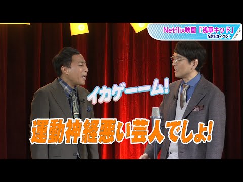 俳優の大泉洋さんと柳楽優弥さんがダブル主演を務めるNetflix映画「浅草キッド」(劇団ひとり監督)の配信記念イベントが12月7日、浅草フランス座演芸場東洋館(東京都台東区)で行われ、お笑いコンビ「ナイツ」がNetflixにかけた新ネタを披露した。