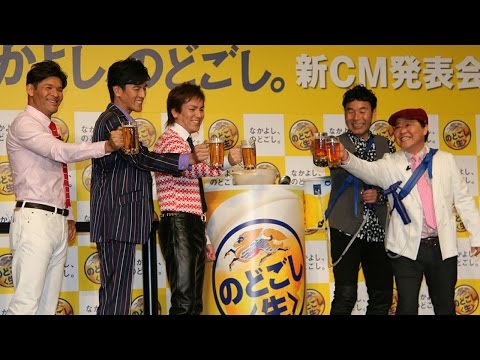 発表会では、2014年から同CMのキャラクターを務めている俳優の堺雅人さんに加え、「おぎやはぎ」の矢作兼さん、照英さん、要さん、狩野さんを新たなCMキャラクターに迎えた新CM「なかよし、のどごし。」もお披露目された。CMは10日から全国で放送される。