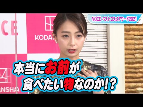 フリーアナウンサーの宇垣美里さんが12月16日、東京都内で行われた、月刊美容誌「VOCE(ヴォーチェ)」(講談社)主催の「VOCE ベストコスメアワード 2021」にゲスト出演し、イベント前に取材に応じた。食べることが好きだという宇垣さんは、食事前には「本当にお前が食べたい物なのか」と自身に問いかけるというマイルールを明かした。