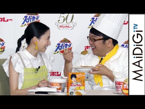 モデルで女優の河北麻友子さんとお笑いコンビ「キャイ~ン」の天野ひろゆきさんが1月22日、東京都内で行われたボンカレーの50周年記念イベントに出席。イベントでは、発売から50周年を迎えるレトルトカレー「ボンカレー」の歴史を振り返りながら、50周年記念の新商品と、同じく発売から30周年を迎えるエースコックのカップラーメン「スーパーカップ」とのコラボ商品が発表されたほか、天野さんと河北さんがコラボ商品の調理実演と試食を行った。