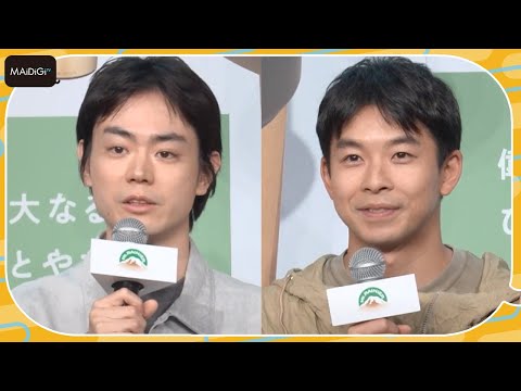 俳優の菅田将暉さんと仲野太賀さんが4月4日、東京都内で行われた「マウントレーニア」新CM発表会に登場した。