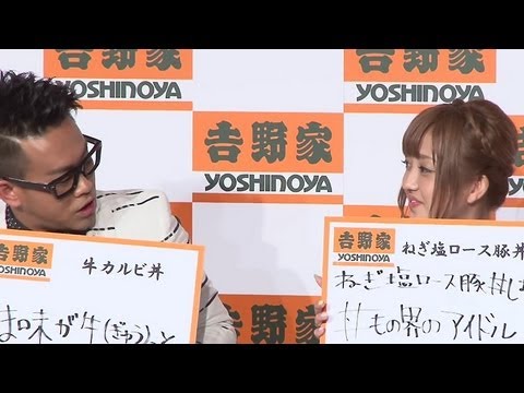 お笑い芸人の宮川大輔さんとアイドルグループ「アイドリング!!!」の菊池亜美さんが7月1日、東京都内で行われた牛丼チェーン「吉野家」の新商品発表会に登場した。