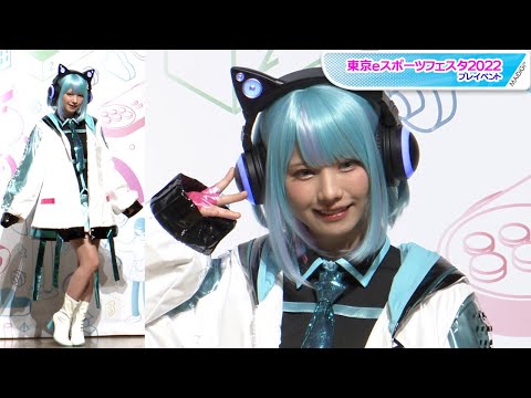 人気コスプレーヤーのえなこさんが11月18日、東京都内で行われたeスポーツのイベント「東京eスポーツフェスタ2022」のプレイベントに登場した。えなこさんが「東京eスポーツフェスタ2022」の公式アンバサダーに就任することが発表され、自身がデザインにも関わったという“サイバーな感じ”のミニ丈の衣装で美脚も披露した。えなこさんは「今の時点で結構暑いです。素材が全部ビニールで作られているので」と明かし、「汗かいてきました」と笑顔で明かした。