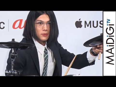 俳優の中川大志さんが1月29日、東京都内で行われた「au 高杉くんシリーズ 新CM発表会」に出席した。この日は、中川さんがドラムを生披露することに。中川さんは、椅子に座るや見事なドラムさばきを見せ、これにはイベントに出席した男女3人組バンド「ヤバイTシャツ屋さん」のドラム担当・もりもりもとさんも「うまい!」と驚くことしきり。もりもりもとさんから「ドラムは顔芸が大事。オーバーに」とアドバイスをもらった中川さんは、髪を振り乱しながらドラムを叩き、最後にはきりりとしたキメ顔を披露。会場の笑いを誘っていた。