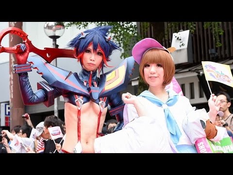 愛知県内で開催中の「コスプレ」世界一を決める「世界コスプレサミット2014」のレッドカーペットパレードが2日、名古屋市中区の繁華街・栄の錦通りを約200メートル封鎖して行われ、大会史上最多となる22カ国・地域から選ばれた代表コスプレーヤー44人が登場した。手元の温度計で30度を超える蒸し暑さの中、各国代表は沿道で見守る大勢の観客の前を練り歩き、暑さに負けない熱気あふれるパフォーマンスを披露した。