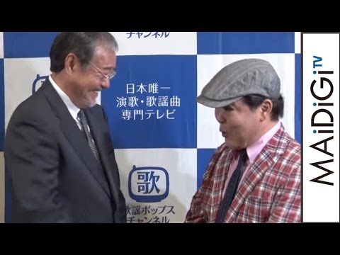 演歌歌手の吉幾三さんとお笑いトリオ「ダチョウ倶楽部」の肥後克広さんと上島竜兵さんが5月24日、東京都内で行われたCS放送「歌謡ポップスチャンネル」の6月特別番組「あなたの街に聞きに幾三!!~心で歌うのど自慢~」の会見に登場した。