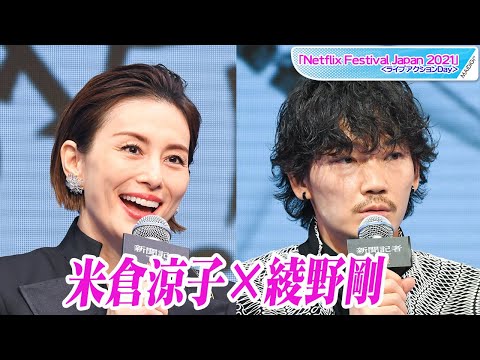 女優の米倉涼子さんと俳優の綾野剛さんが11月10日、東京都内で行われた「Netflix Festival Japan 2021」の<ライブアクションDay>に登場した。