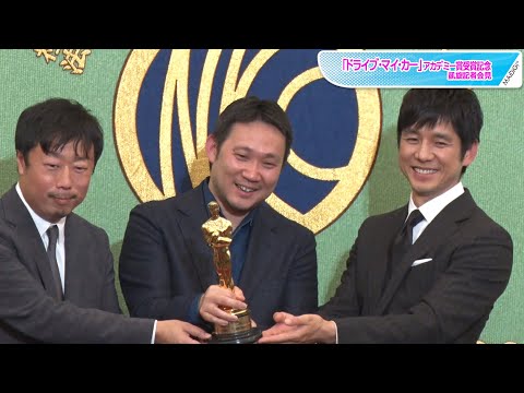 俳優の西島秀俊さんが4月5日、東京都内で行われた映画「ドライブ・マイ・カー」のアカデミー賞受賞記念凱旋記者会見に、濱口竜介監督と映画プロデューサーの山本晃久さんとともに出席。授賞式での思い出などを明かした。