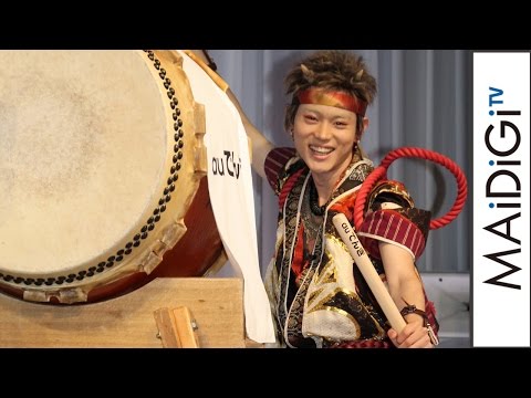 この日は、4月の電力小売り全面自由化に伴い、KDDIが提供する予定の電力サービス「auでんき」の発表会。ステージでCMのように和太鼓をたたくパフォーマンスを披露することになった菅田さんは、一緒に登場した同社の石川雄三専務から「auでんき始まるので『バシッ』とやってください」と依頼され、「かしこまりました」とバチを受け取り、「気合が入る。『バシッと』と言われたので、バシッと決めたい」と語り、和太鼓をリズムよくたたいて、会場を盛り上げていた。